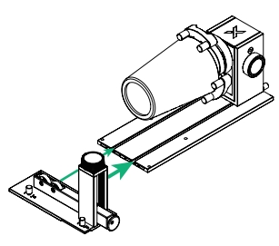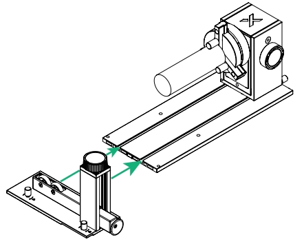 4. 将丝杆升降组件滑入主底板,用喇叭口抵住工件的另一侧。