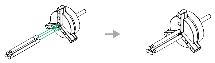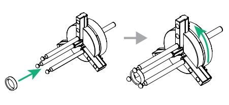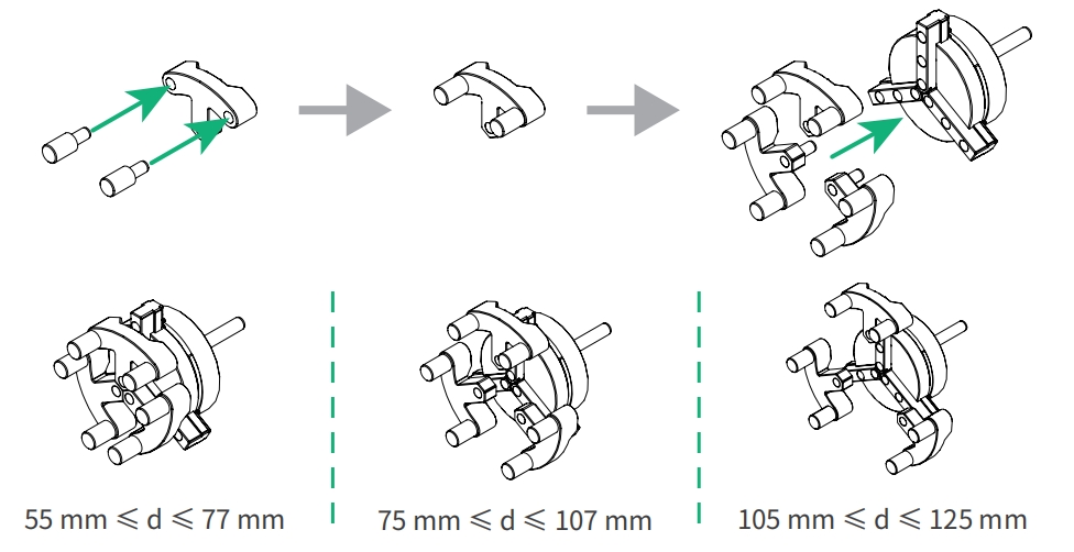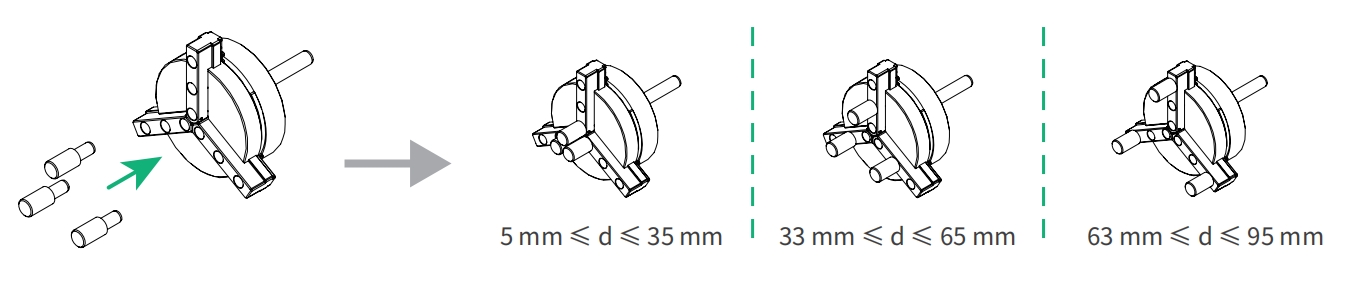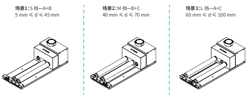 10. 以相同的方式安装另一个滚轴组件。根据不同工件直径,可分为以下三种使用场景。