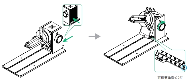 5. 将动力组件的角度调到最大(26°),然后顺时针旋转旋钮锁定角度。