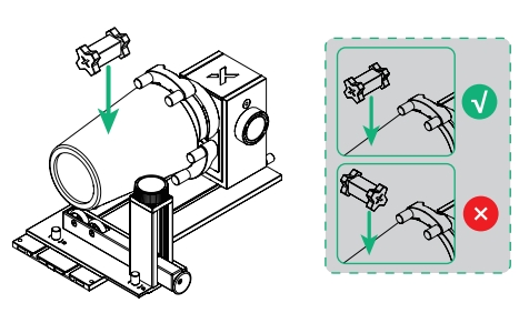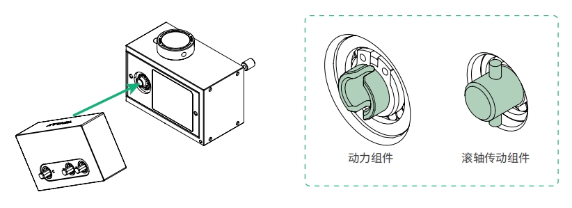1. 将滚轴传动组件插入动力组件,注意对齐高亮部位。