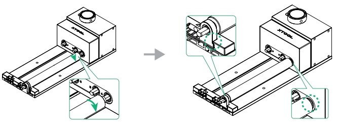 2. 旋转滚轴传动组件,使其底边平行于动力组件的底边。