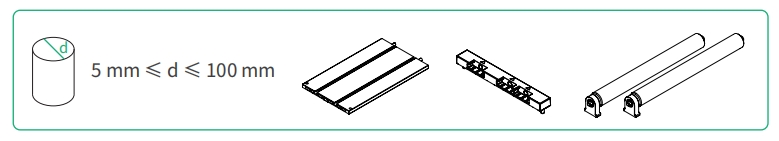 | 直径范围在 55 mm ≤ d ≤ 125 mm 的大直径和有光滑表面的圆柱体 |