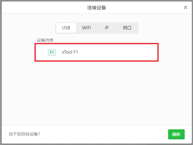 提示: 连接设备后,你可以选择为设备配置 Wi-Fi。这样,下次连接设备时,无需使用 USB 数据线,只需确保 xTool F1 与电脑连入相同 Wi-Fi,即可进行连接。