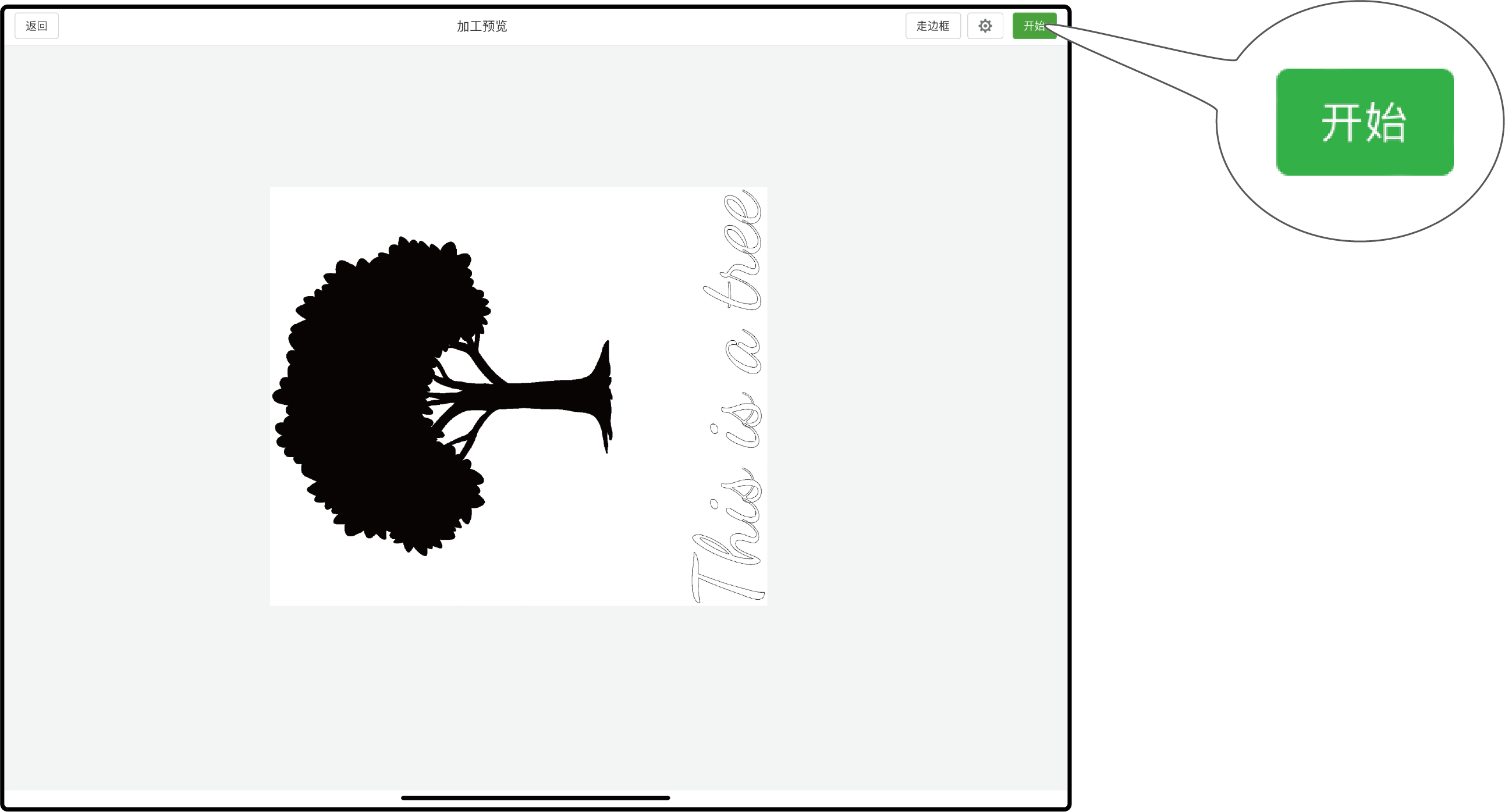 (2)在软件中预览加工对象,然后,在软件右上角点击“开始”。