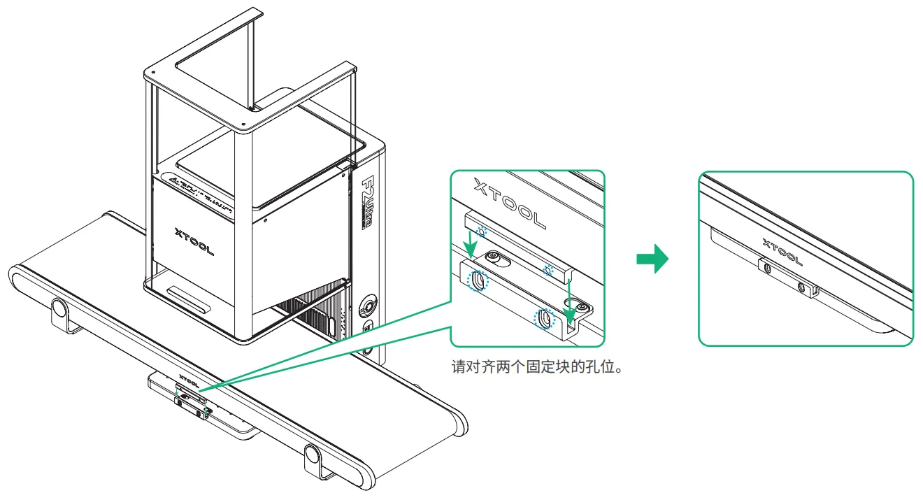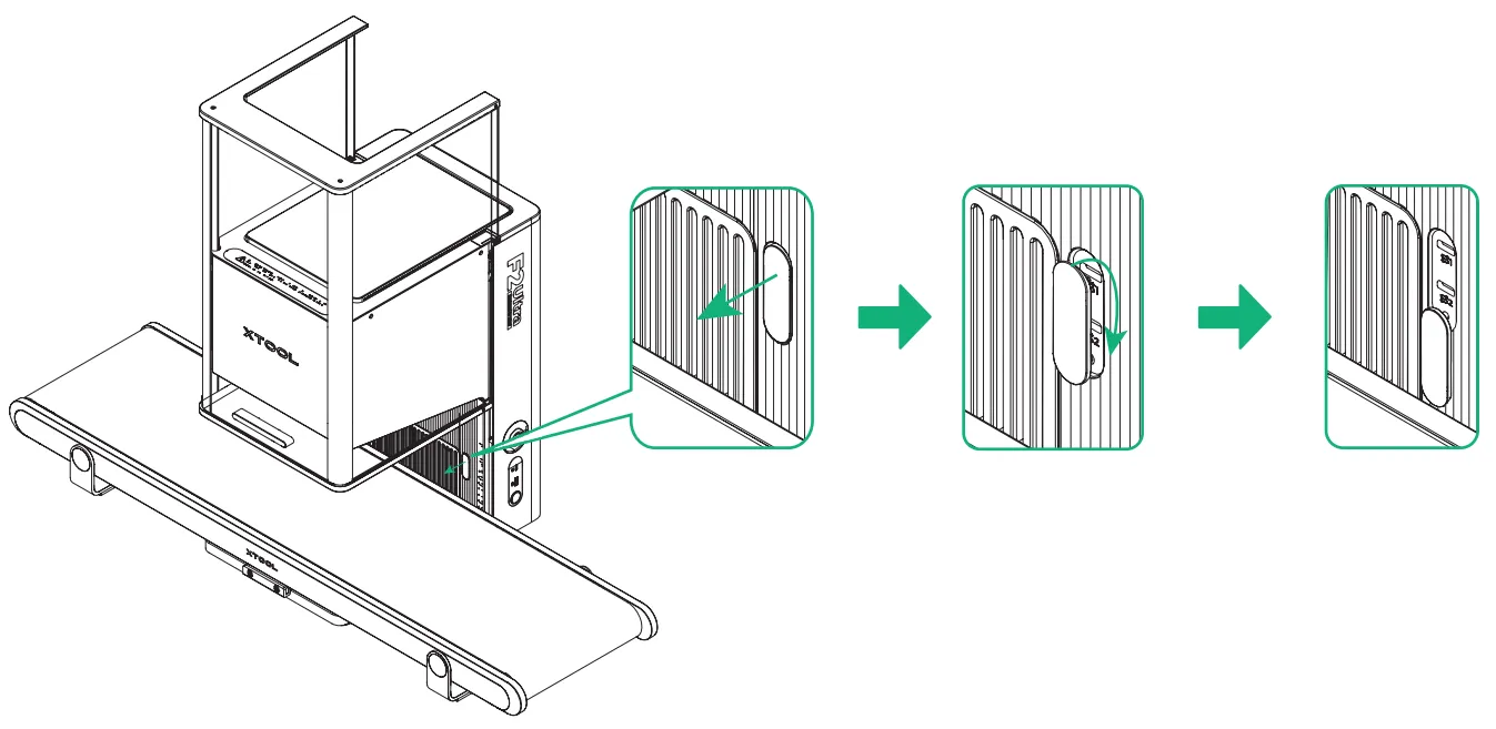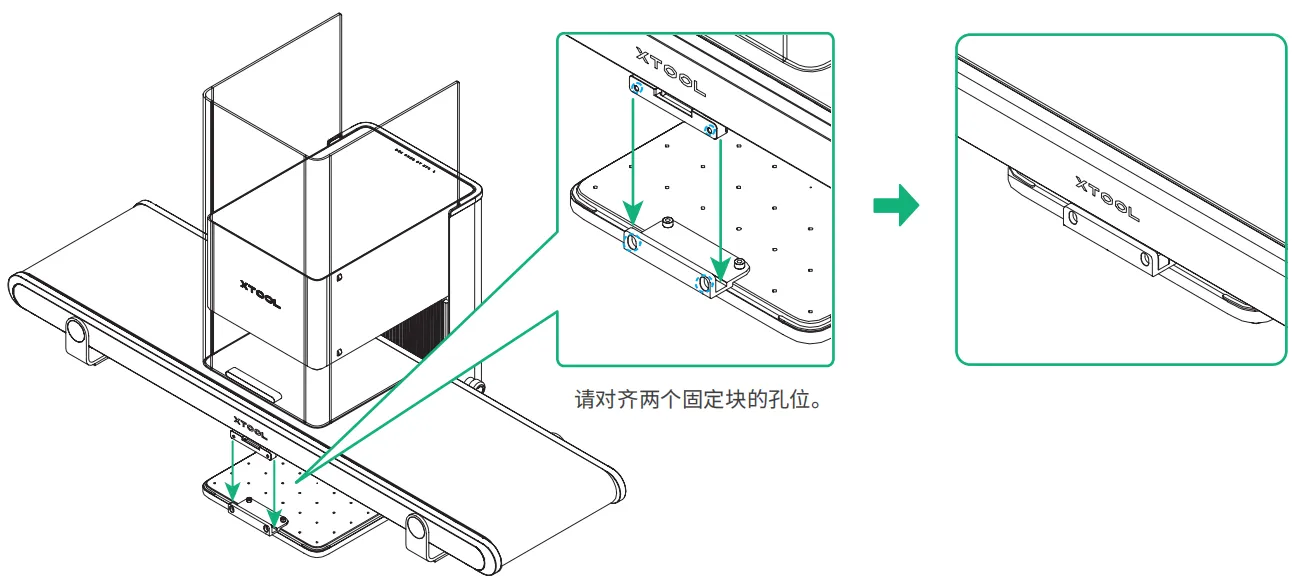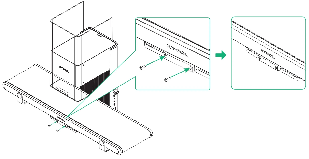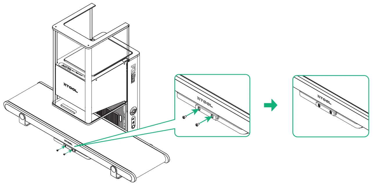 💡 此处以 xTool F2 Ultra 为例,传送带配合 xTool F1 Ultra 的用法相同。