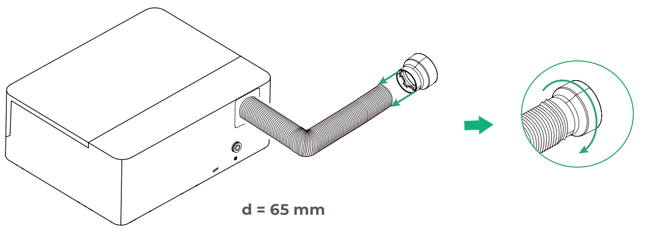排烟管接头 2: 适用于连接直径为 65 mm 的定型定向排烟管。 |