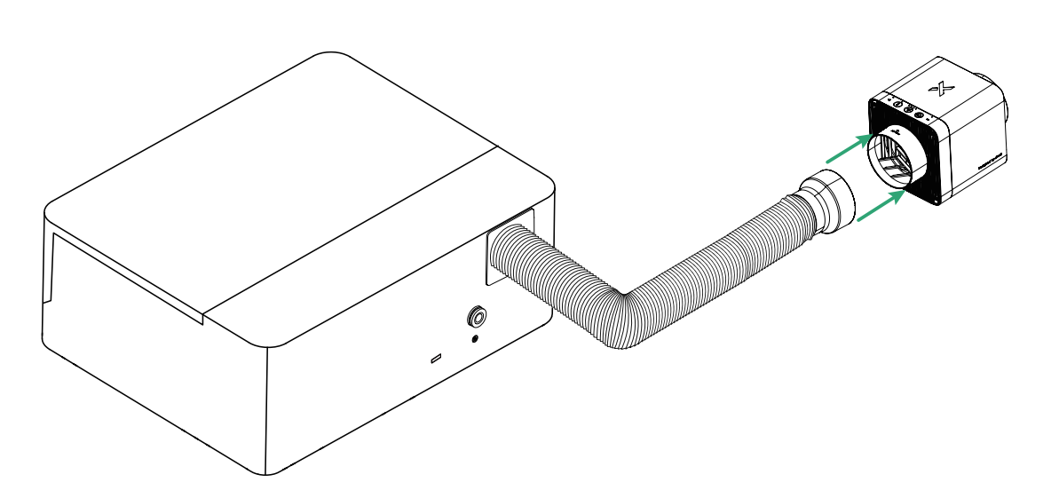 ■ 将蓝牙适配器连接到 xTool 主机后,管道风机与 xTool 主机会通过蓝牙自动建立连接。xTool 软件的主 机设备信息页会显示管道风机的配件信息,有关详情,可参考 “搭配 xTool 软件使用”。