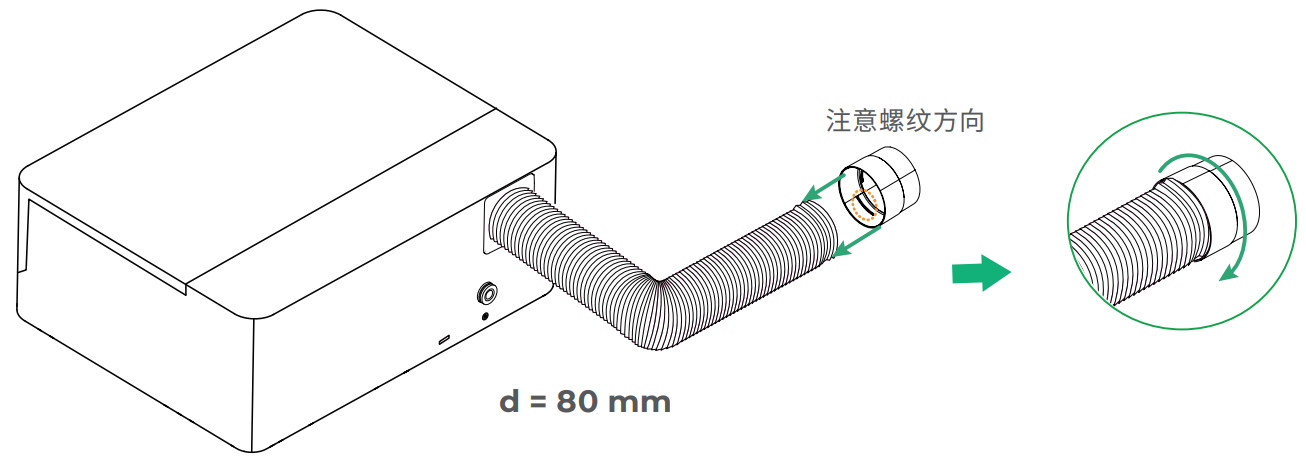 场景一:机器排烟管直径为 80 mm,适用于 xTool P3, S1, F1 Ultra, 及 F2 Ultra