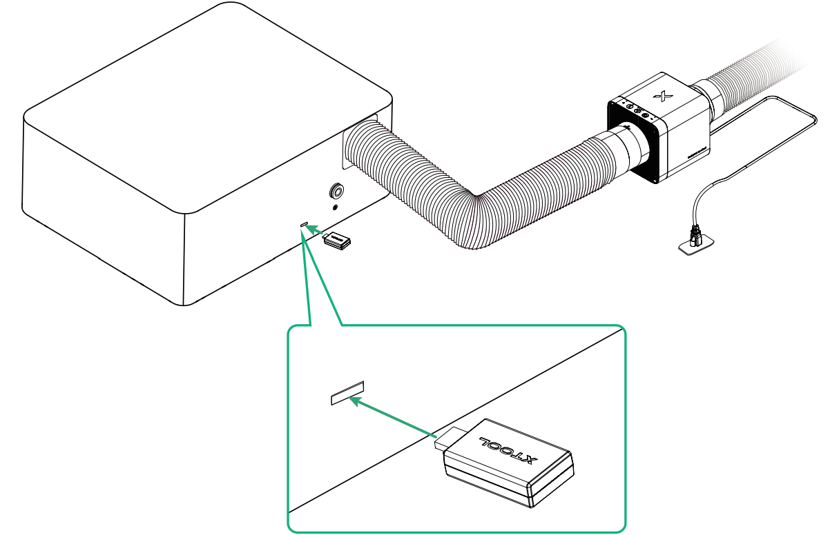■ 将蓝牙适配器插到 xTool 激光机器的设备扩展接口,上图仅为示例。