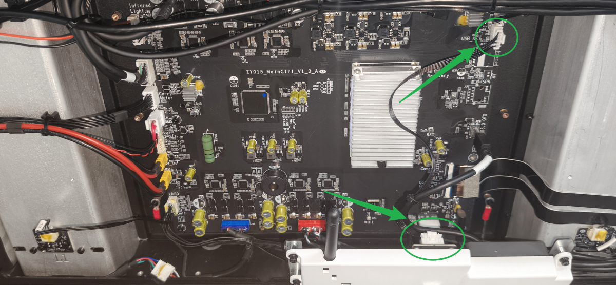 3. 检查下图所示的蓝牙模块连接线是否松动。如果松动,请重新牢固连接。