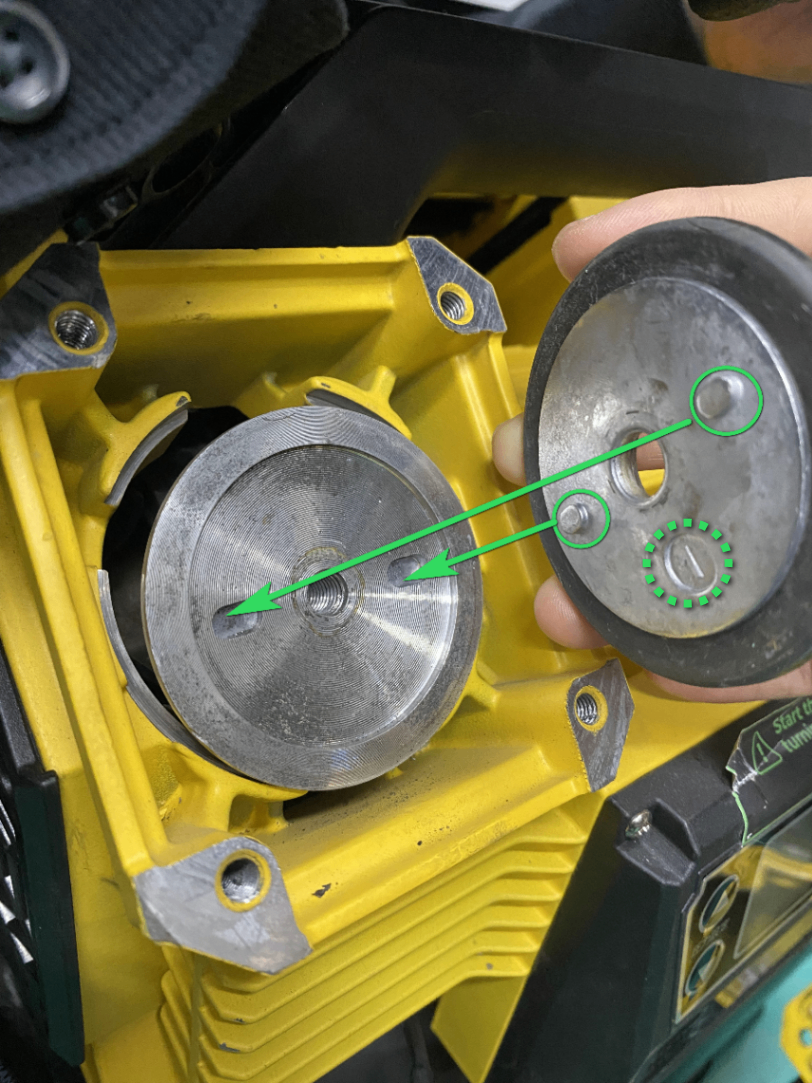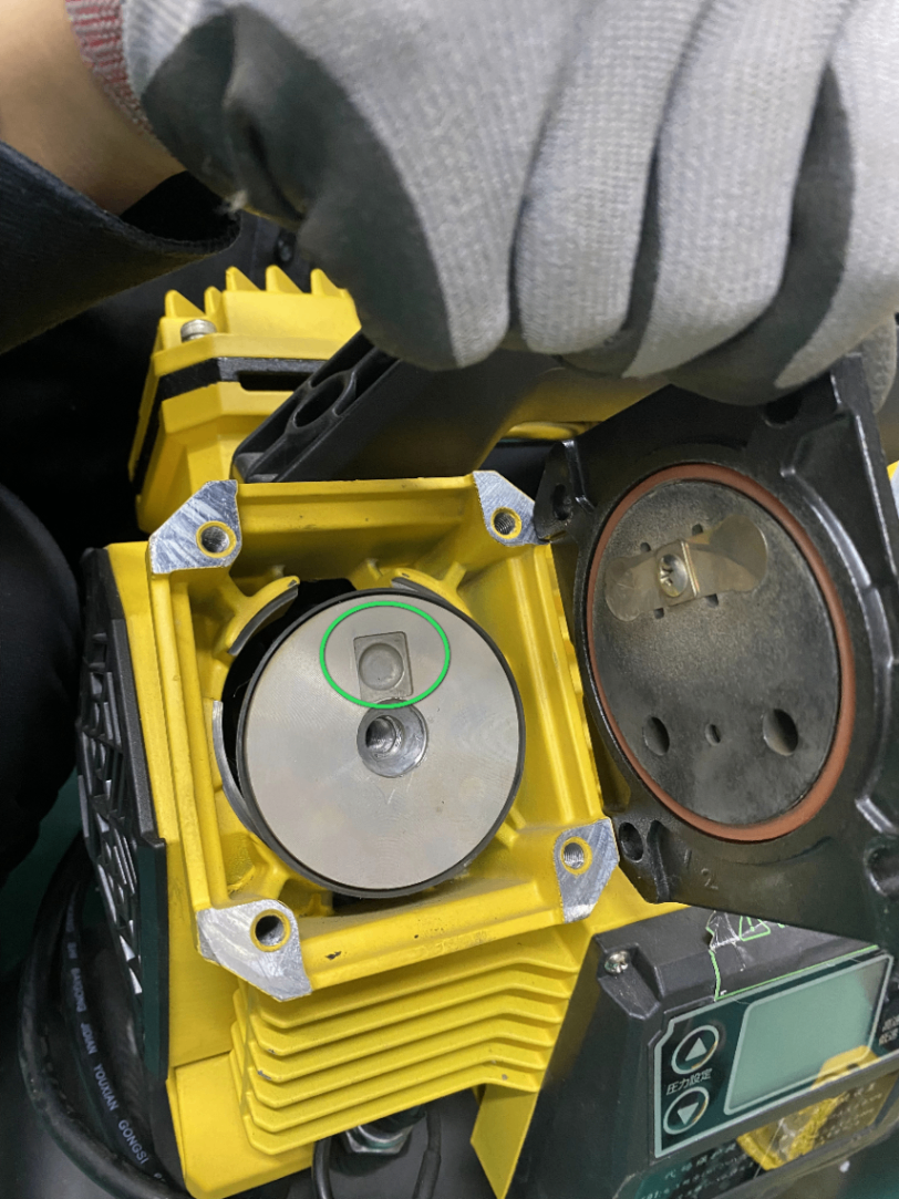 (1) 将新的皮碗套在压块上,然后安装到图示位置,注意两个凸起需对准两个凹槽,且压块上的数字应在下方。