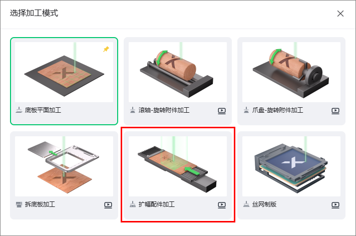 4. 在界面顶端,点击当前的加工模式,选择“扩幅配件加工”模式。