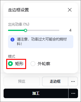 7. 点击右下方的走边框设置图标,选择“矩形”走边框模式。