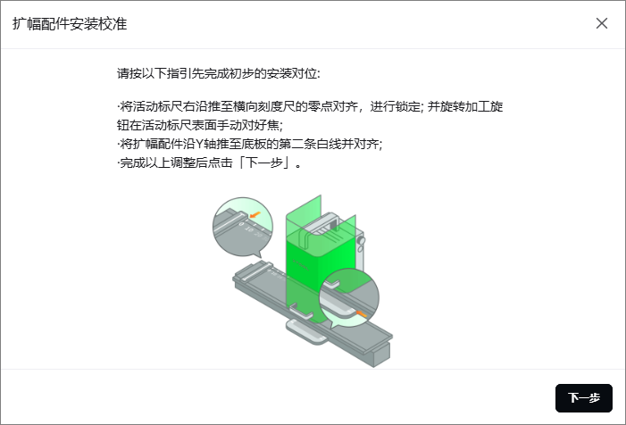 2. 左右移动扩幅配件,使蓝色激光与标尺上的“工”字刻度对齐。