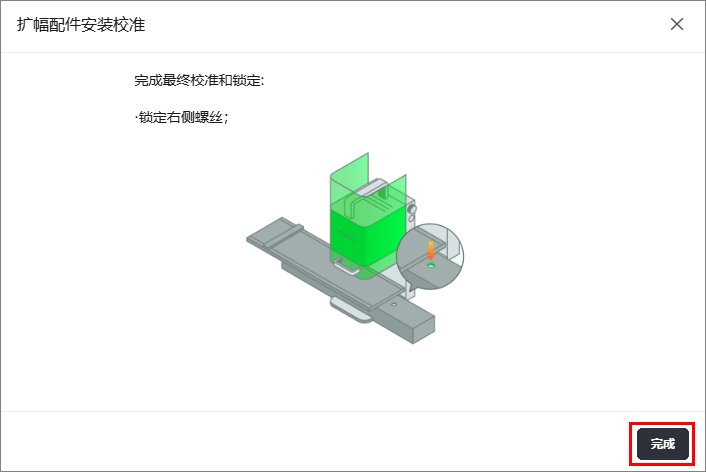 3. 校准激光完毕后,用螺丝刀将左侧螺丝完全锁紧,锁紧时请用手轻轻扶住扩幅配件,以免蓝色“工”字激光位置偏移。