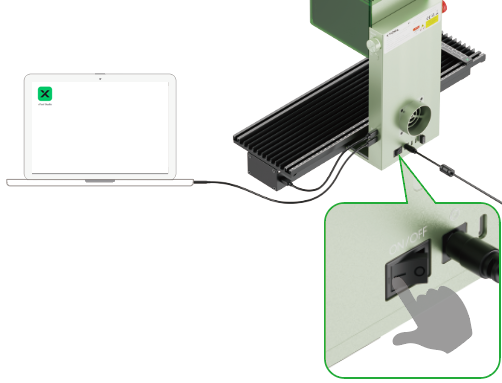 2. 用另一根 USB 线连接 xTool F1 和电脑,然后连接电源,并打开 xTool F1 的电源开关。
