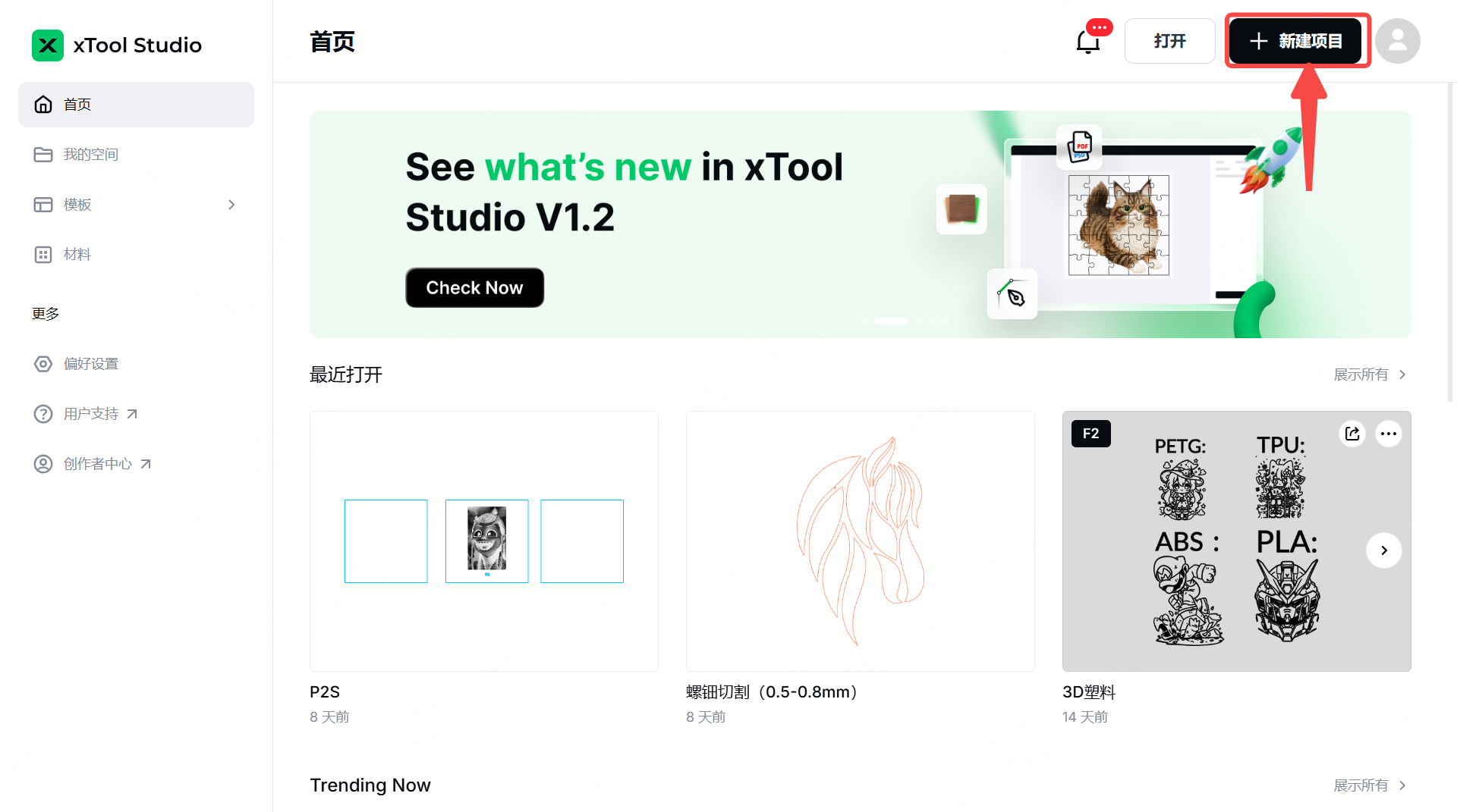 (2)在电脑上打开 xTool Studio。在 xTool Studio 右上角,点击 +新建项目按钮。