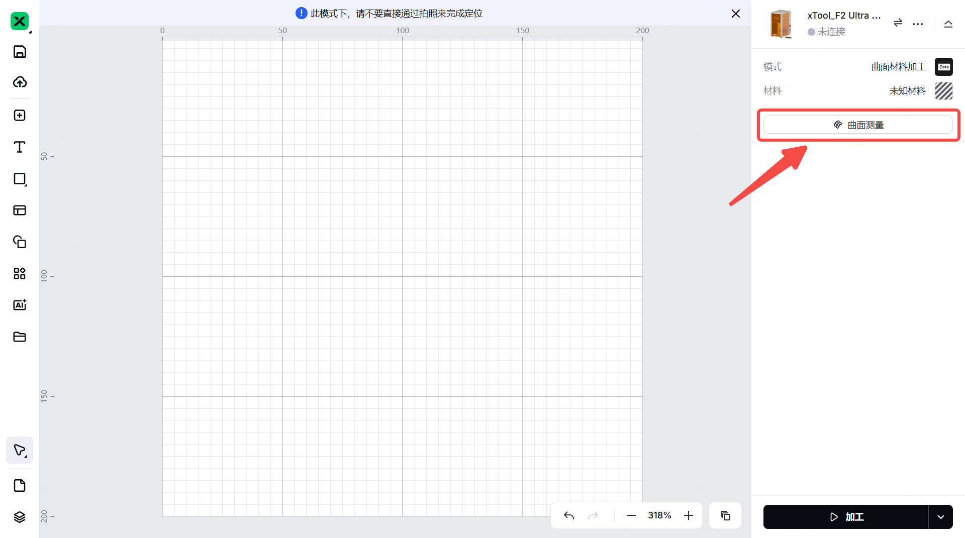 (1) 在 xTool Studio 右侧,点击曲面测量图标。