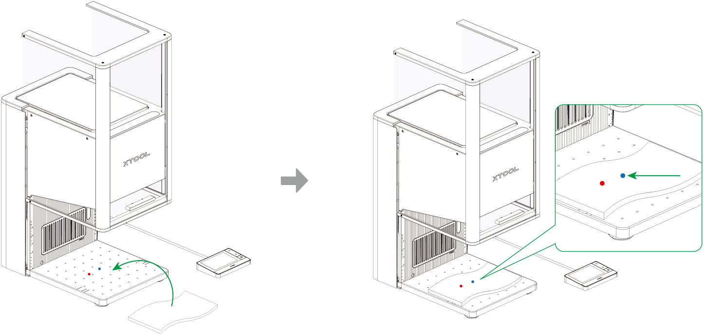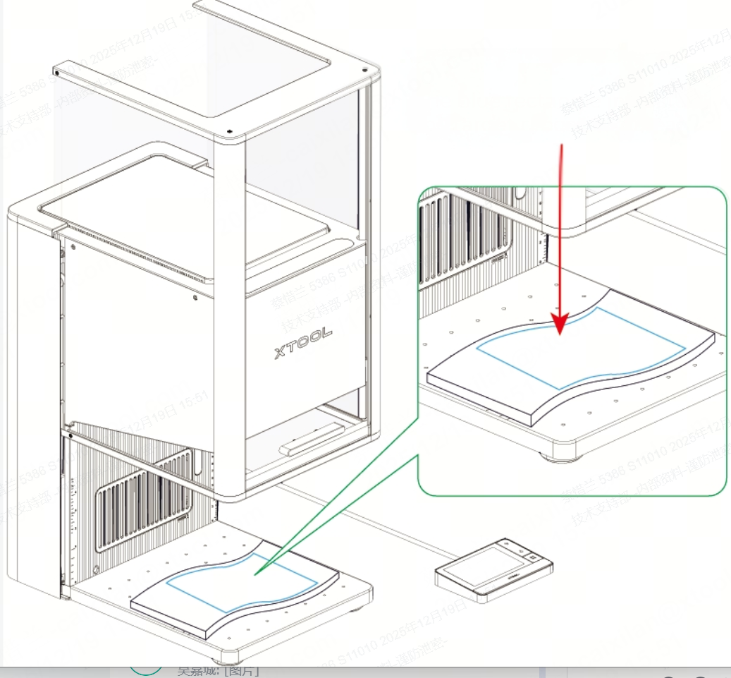 注: 画布上的灰色区域未被测量。请勿在此区域放置物品。