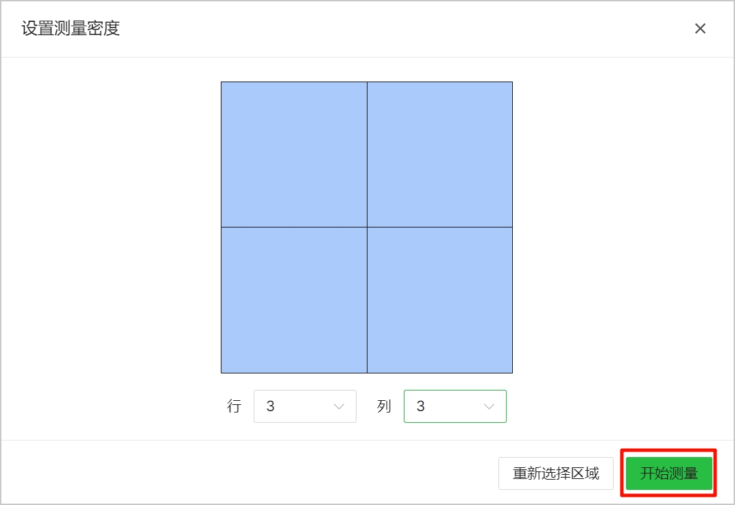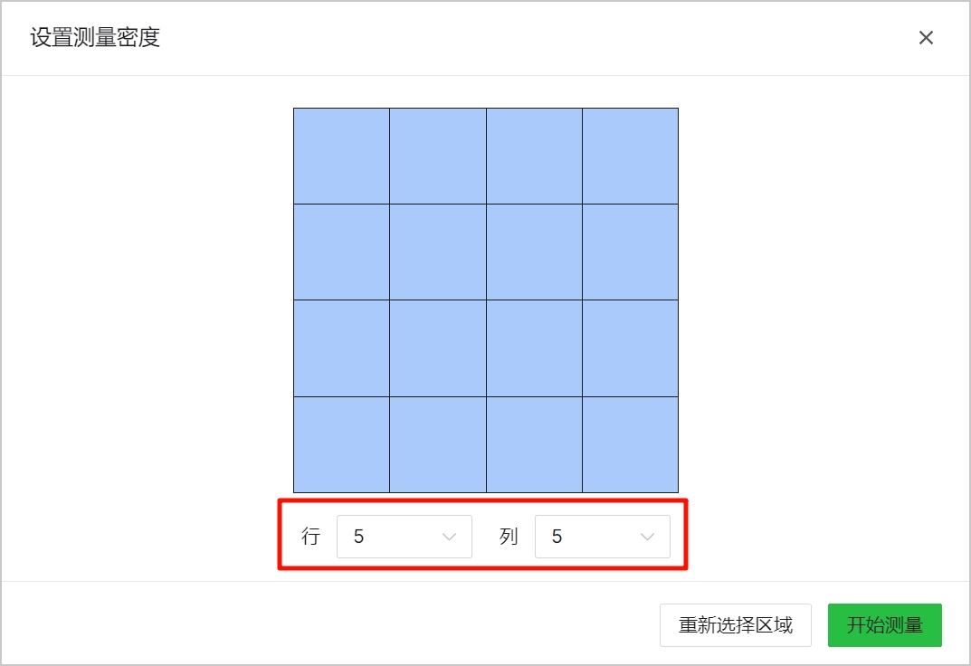 注: 行列越多,测量密度越高,模型越精确,但测量时间越长。