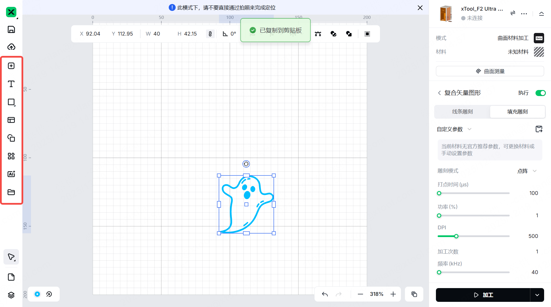 注意:关于如何使用 xTool Studio 设计对象的更多信息,请参见软件学习中心 。