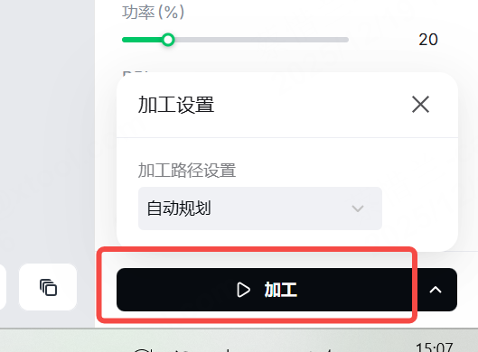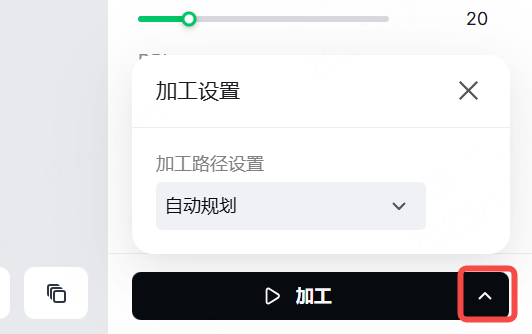 (1) 在 xTool Studio 右下角,点击“ 加工 ”旁边的图标以设置处理路径。