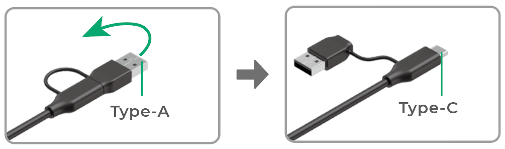 USB 数据线另一端既可适配 Type-A 接口,也可适配 Type-C 接口,请根据需要使用。