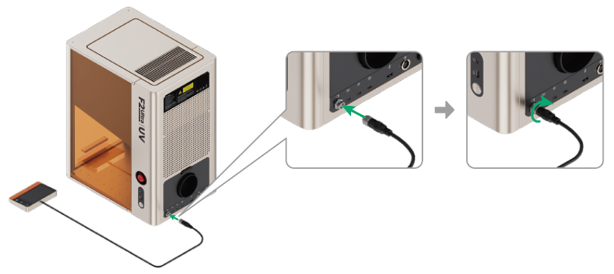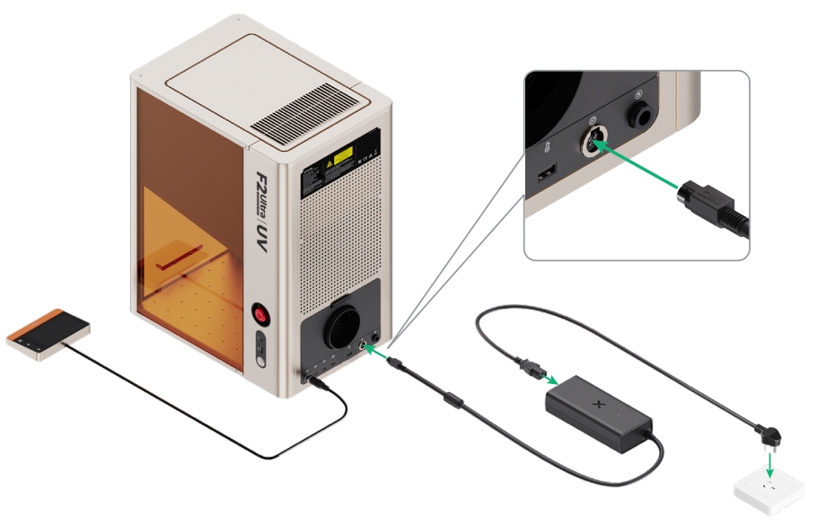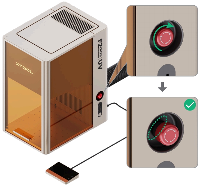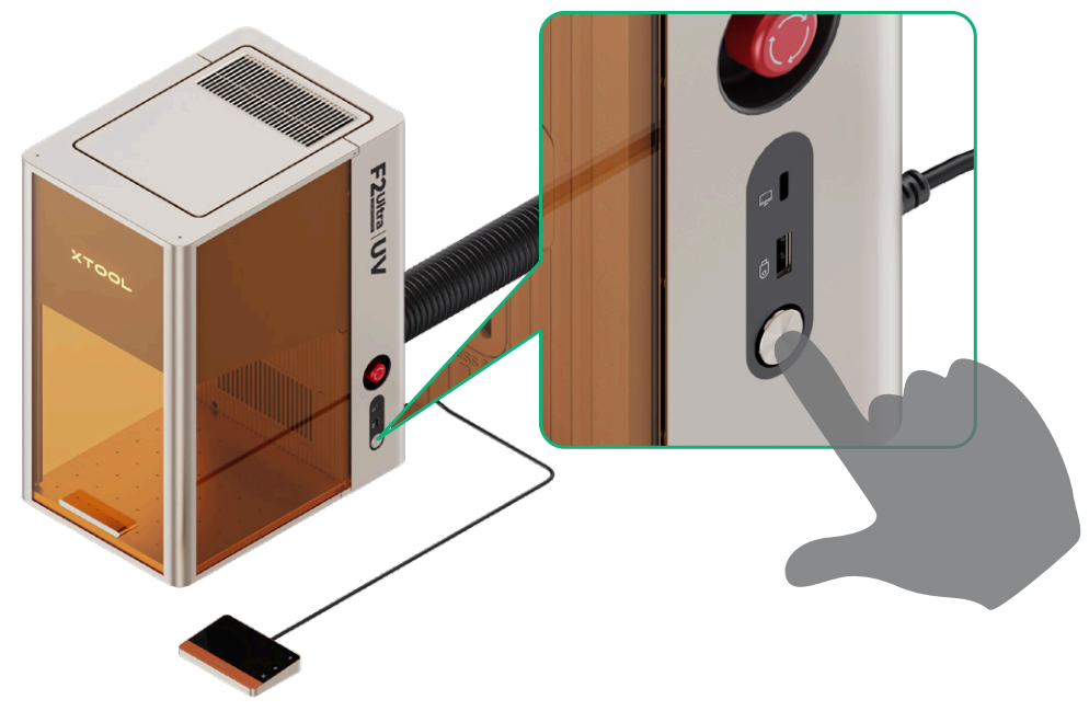 按下电源按钮,启动 xTool F2 Ultra UV 激光雕刻机。
