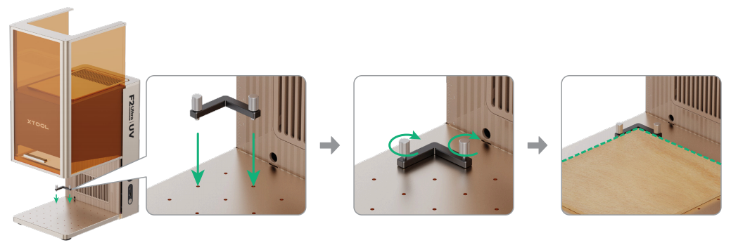 如需批量加工,可使用 L 型定位块以确保每次都能将材料放置在相同的位置。