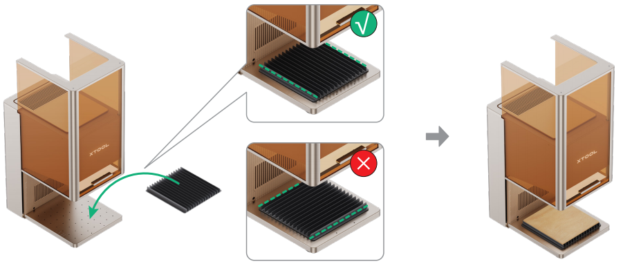 如需切割材料,可在材料下方放置刀条板,以减轻材料背面的熏黄,并保护底板。