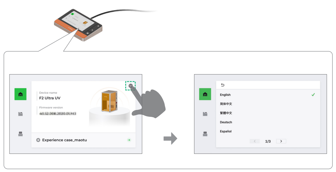 设置 xTool F2 Ultra UV 激光雕刻机触控屏的界面语言。