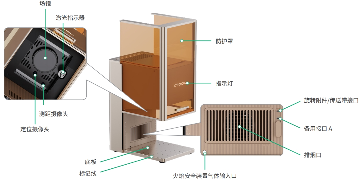 备用接口 A 与备用接口 B 的功能不同,请勿混用。 1 类激光机器不含急停开关。