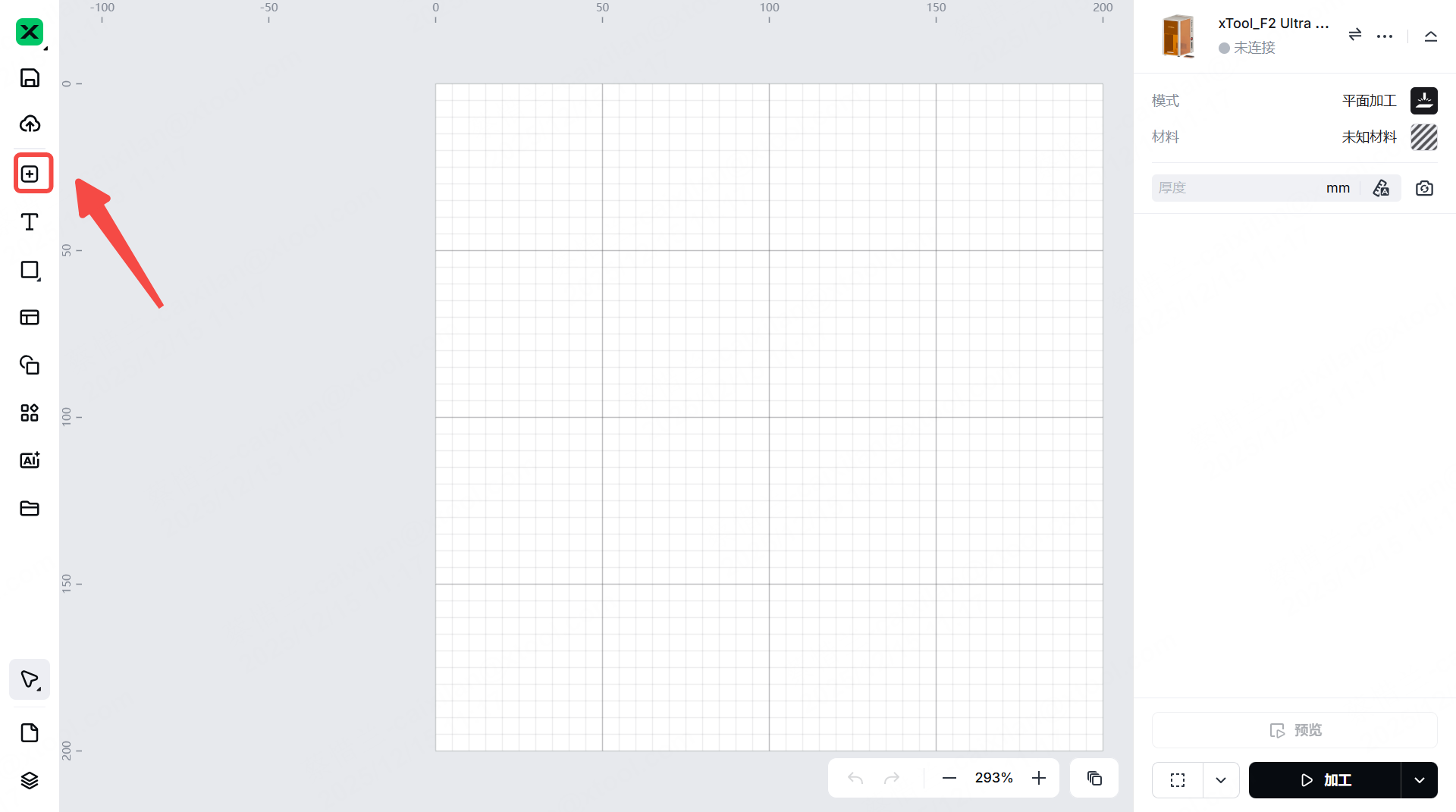 XTool Studio 拍摄了 xTool F2 Ultra UV 处理区域的照片,并将其用作画布背景。你可以根据背景来定位处理对象。