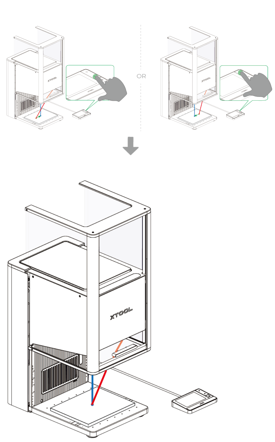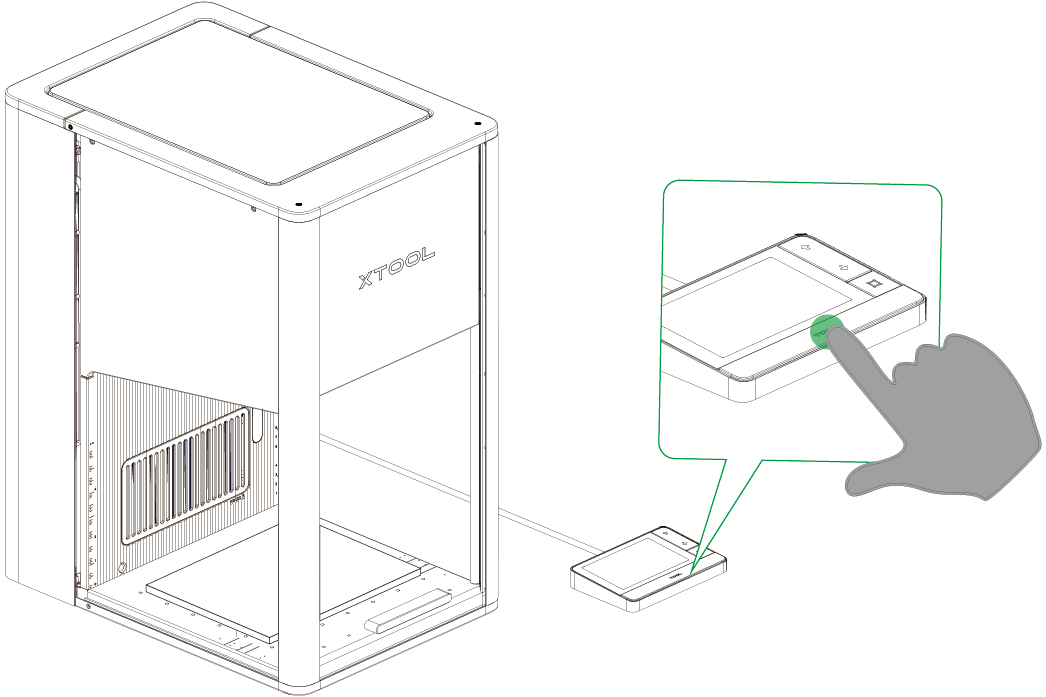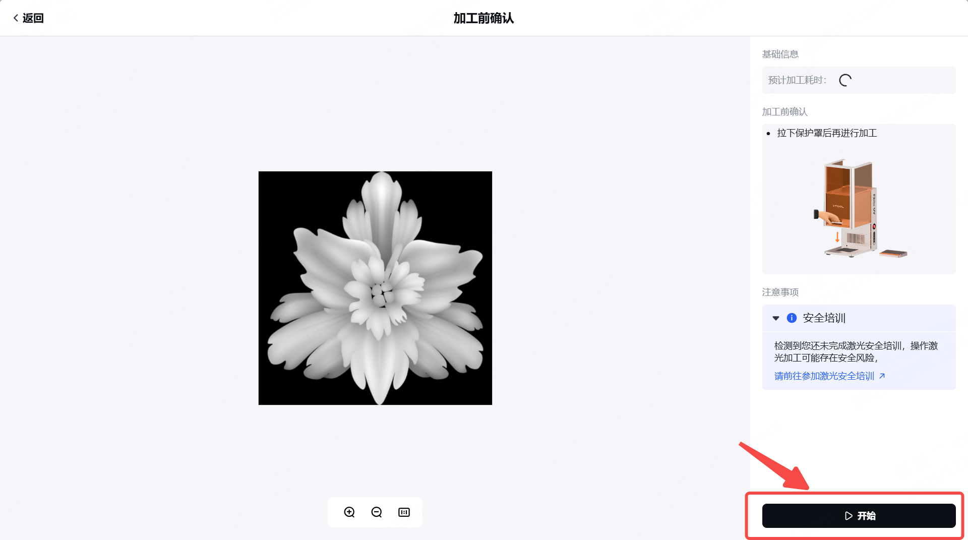 (3) 关闭 xTool F2 Ultra UV 的保护外壳。在 xTool Studio 右下角,点击 “开始 ”。当软件显示“准备好”时,按下触摸屏控制器上的 XTOOL 启动/停止按钮即可开始加工。