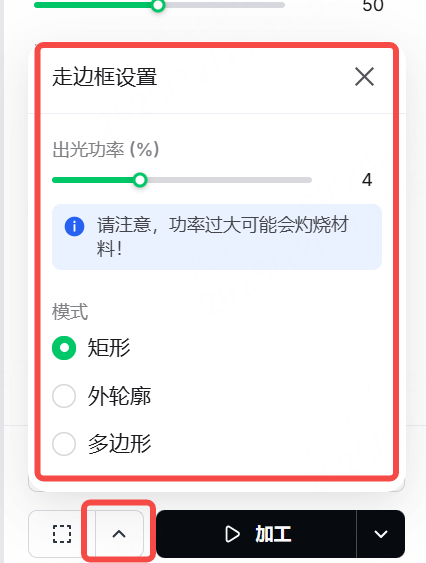在矩形模式下,激光点沿着处理对象的矩形边界行走。