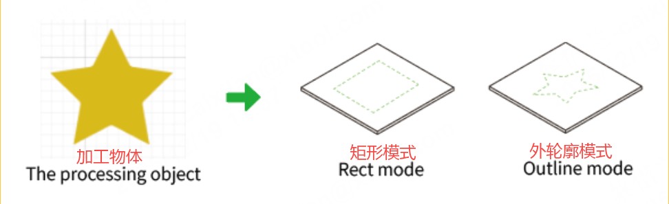 在外轮廓模式中,激光点沿着处理对象的轮廓移动。