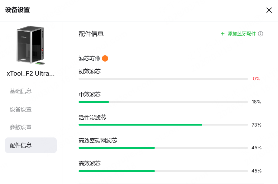 (3)在“配件信息”页面,你能看到净化器的详细信息。