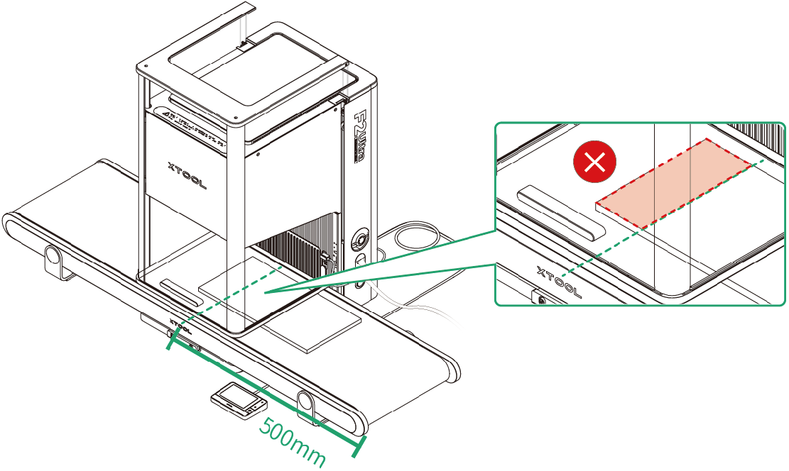 - 配合传送带使用时,xTool F2 Ultra 的防护罩无法完全关闭,为了确保使用者的安全,请佩戴护目镜后再开始加工。