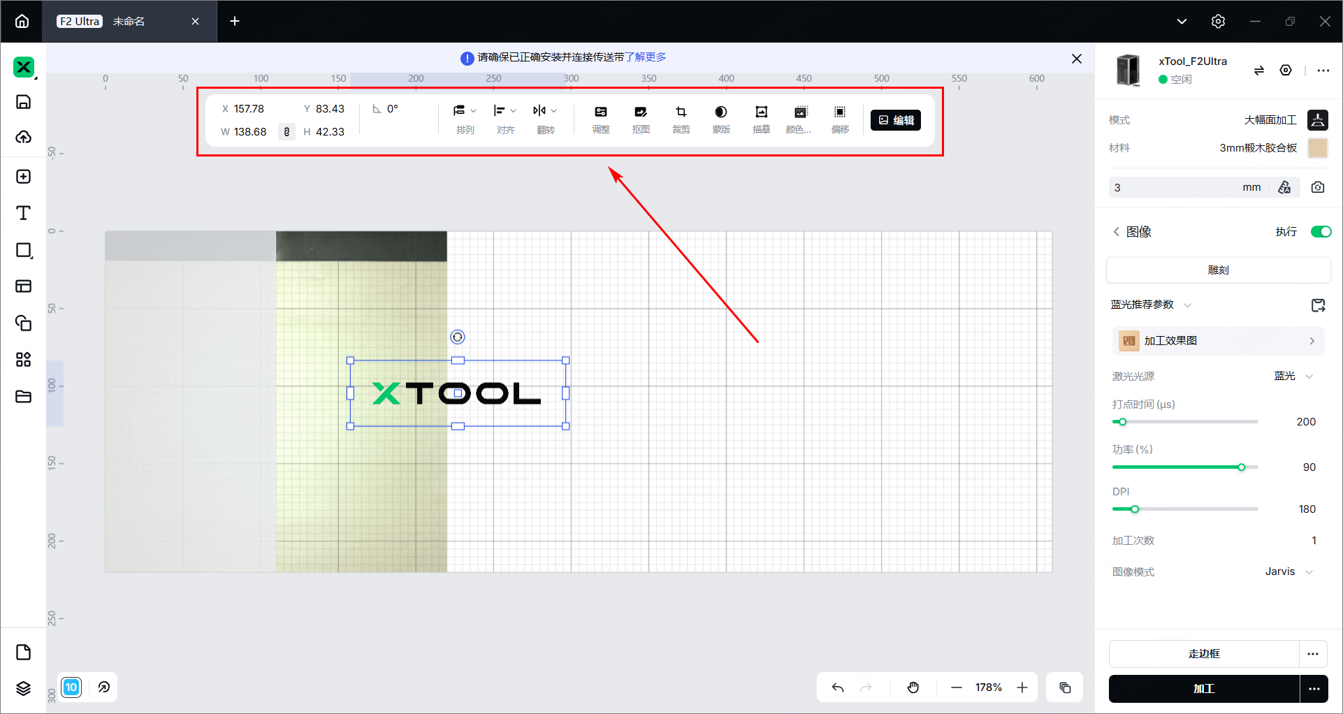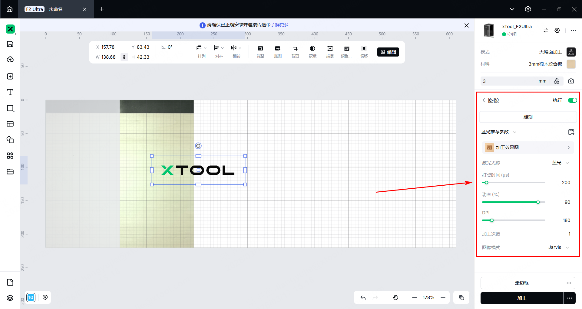 (1)连接 xTool F2 Ultra 与传送带