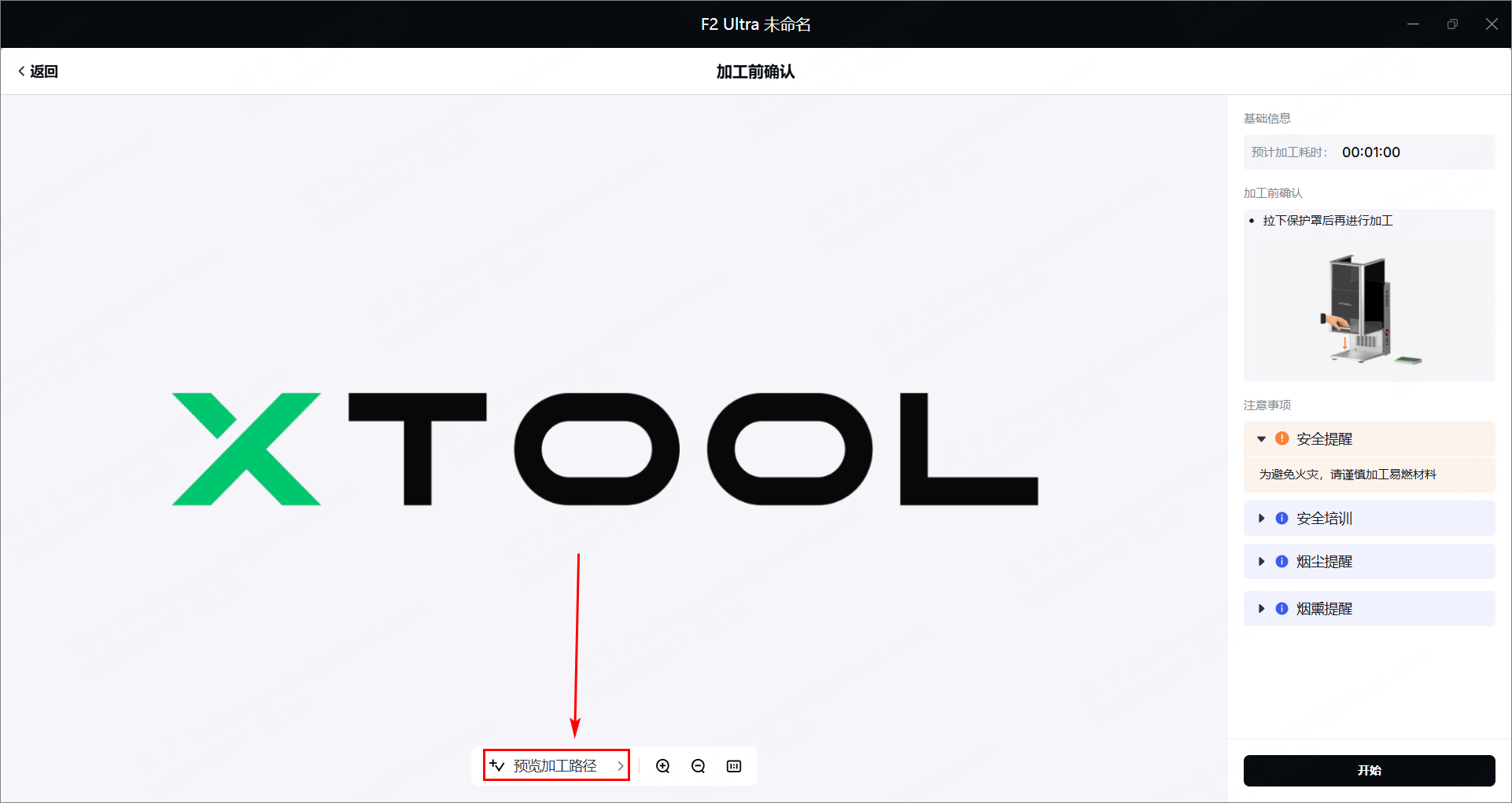 (5)在 xTool Studio 右下角点击“开始”。