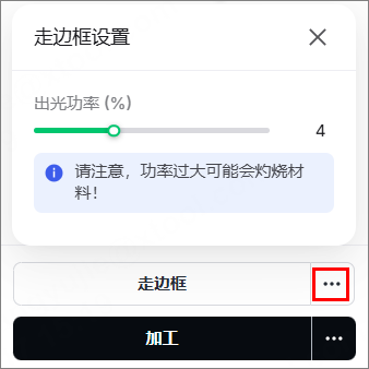 (2)点击“走边框”,激光光斑将沿着加工图案的边缘移动,使你能够在材料表面预览加工区域。