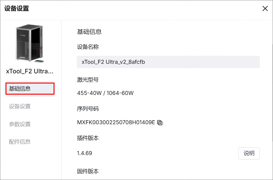 - 设备名称:为 xTool F2 Ultra 设置新的名称。