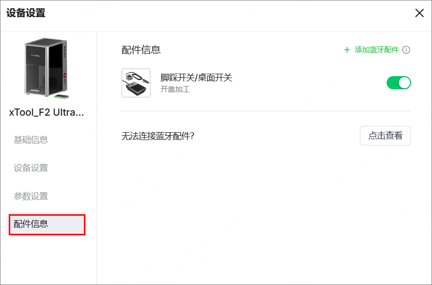 5. 在“配件信息”中,你可以查看连接到 xTool F2 Ultra 的配件信息。