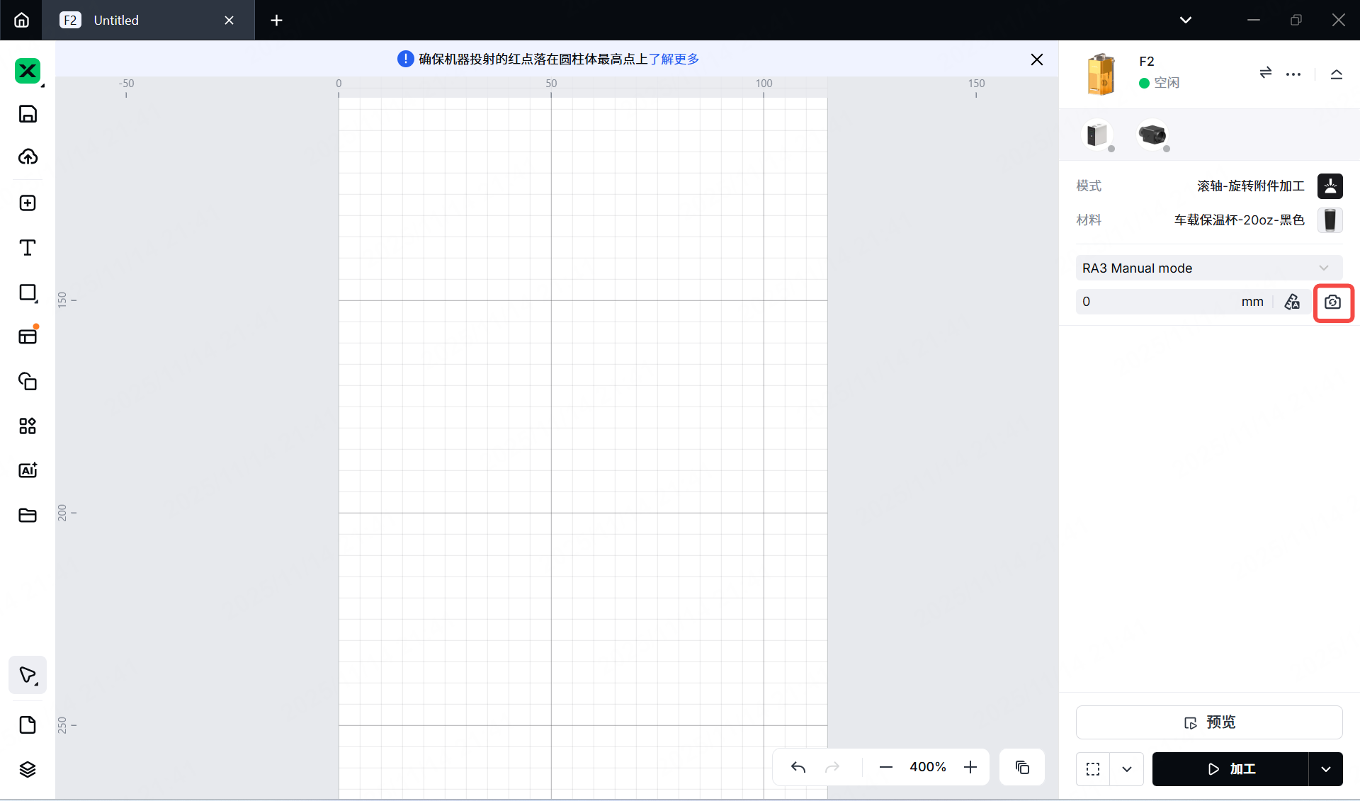 提示:拍摄的照片用于作为画布背景,帮助你确定加工对象的摆放位置。