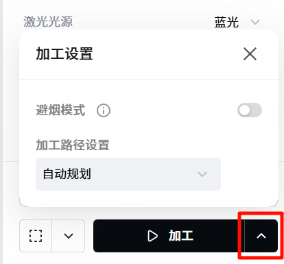 (2)在软件右下角,点击“加工”按钮旁的箭头图标,设置激光加工路径。