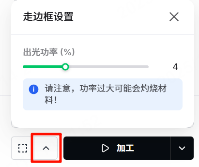 (1)在软件右下角,点击“加工”按钮左边的三角图标,设置走边框时的出光功率。