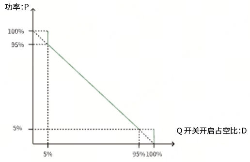 功率与 Q 开关开启占空比之间的关系如下图所示。