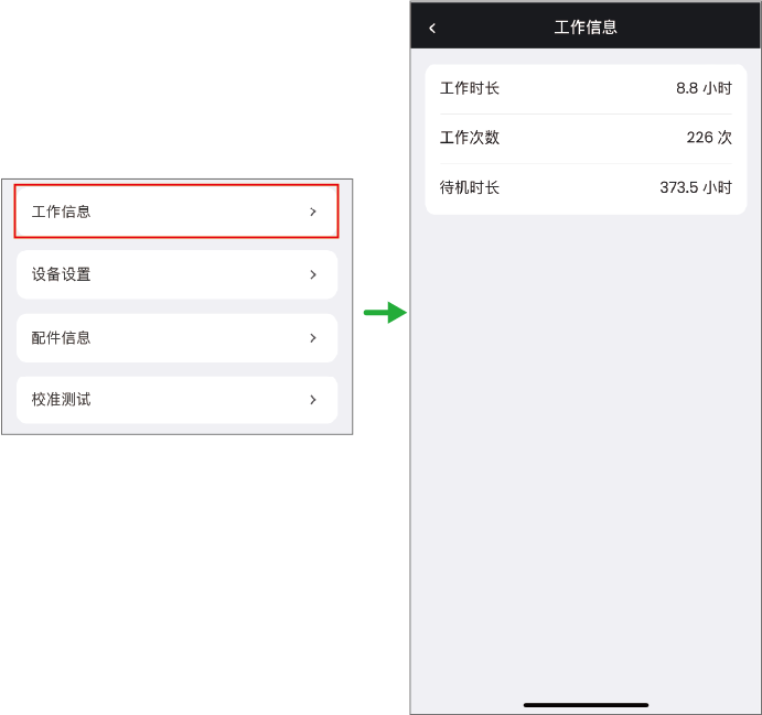 (2)进入“工作信息”板块,你可以查看设备工作信息。