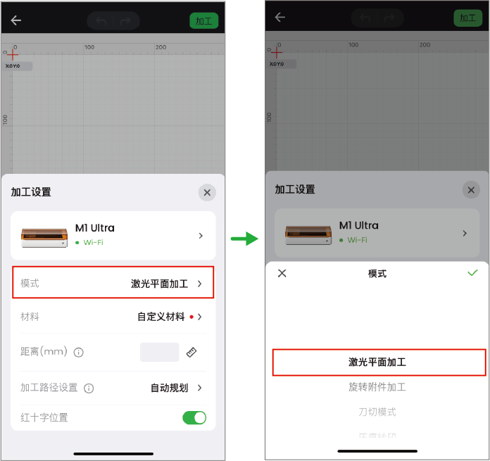 如果需要在电脑上进行加工背景预览,查看 在电脑上使用 xTool M1 Ultra 拍照定位功能(手机端)。