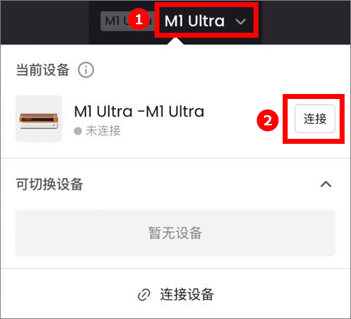 💡 注意:如果你之前已经连接过 xTool 设备,点击设备名称,选择“连接”。